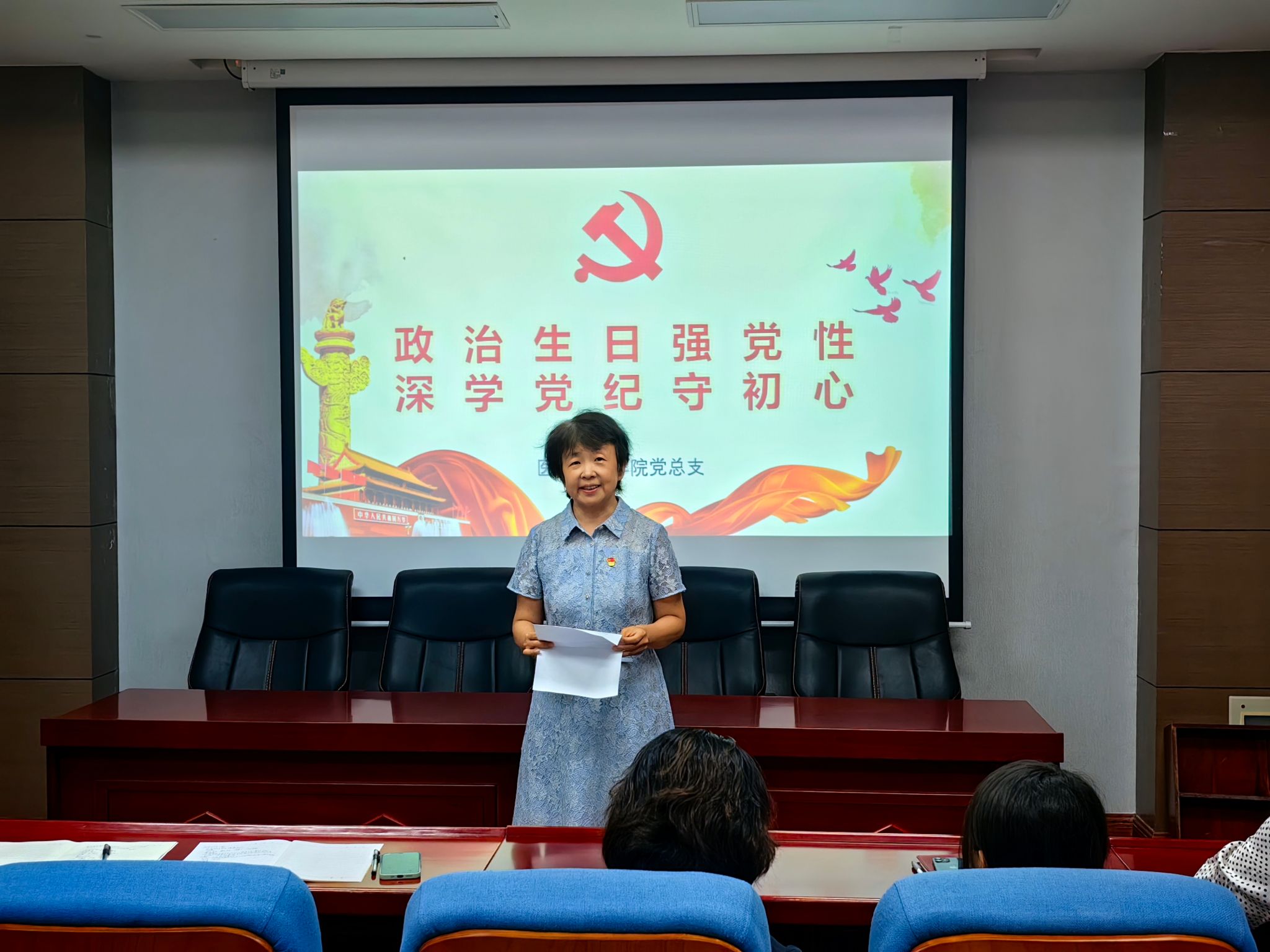 为庆祝中国共产党成立103周年,继承和弘扬党的光辉传统和优良作风,进一步强化党员身份意识、责任意识和担当意识,推动党纪学习教育走深走实,6月28日,我院党总支开展“政治生日强党性 深学党纪守初心”主题党日活动。此次活动由学院党总支副书记徐景彩主持,学院党政领导班子及全体教职工党员参加。